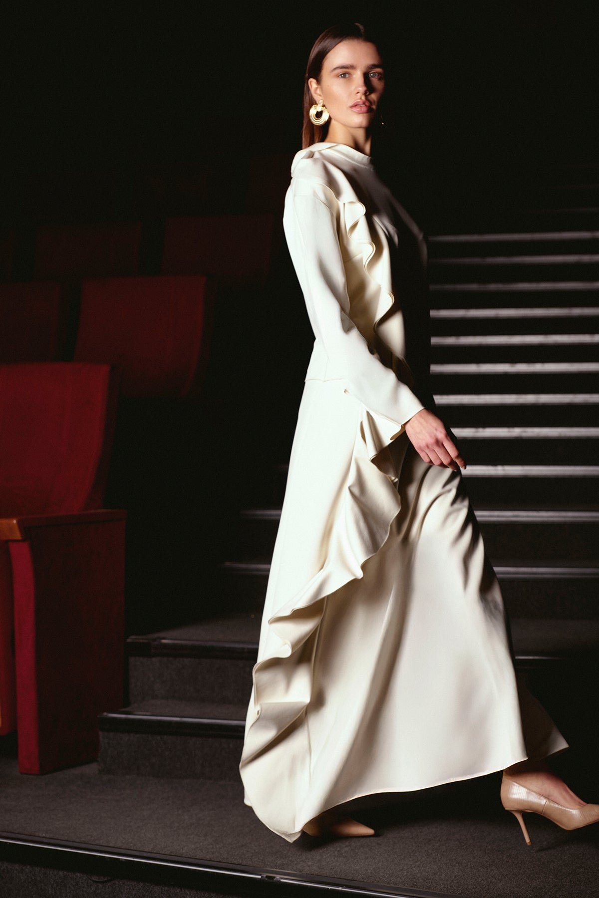 Asimetrik Volan Detaylı Etek